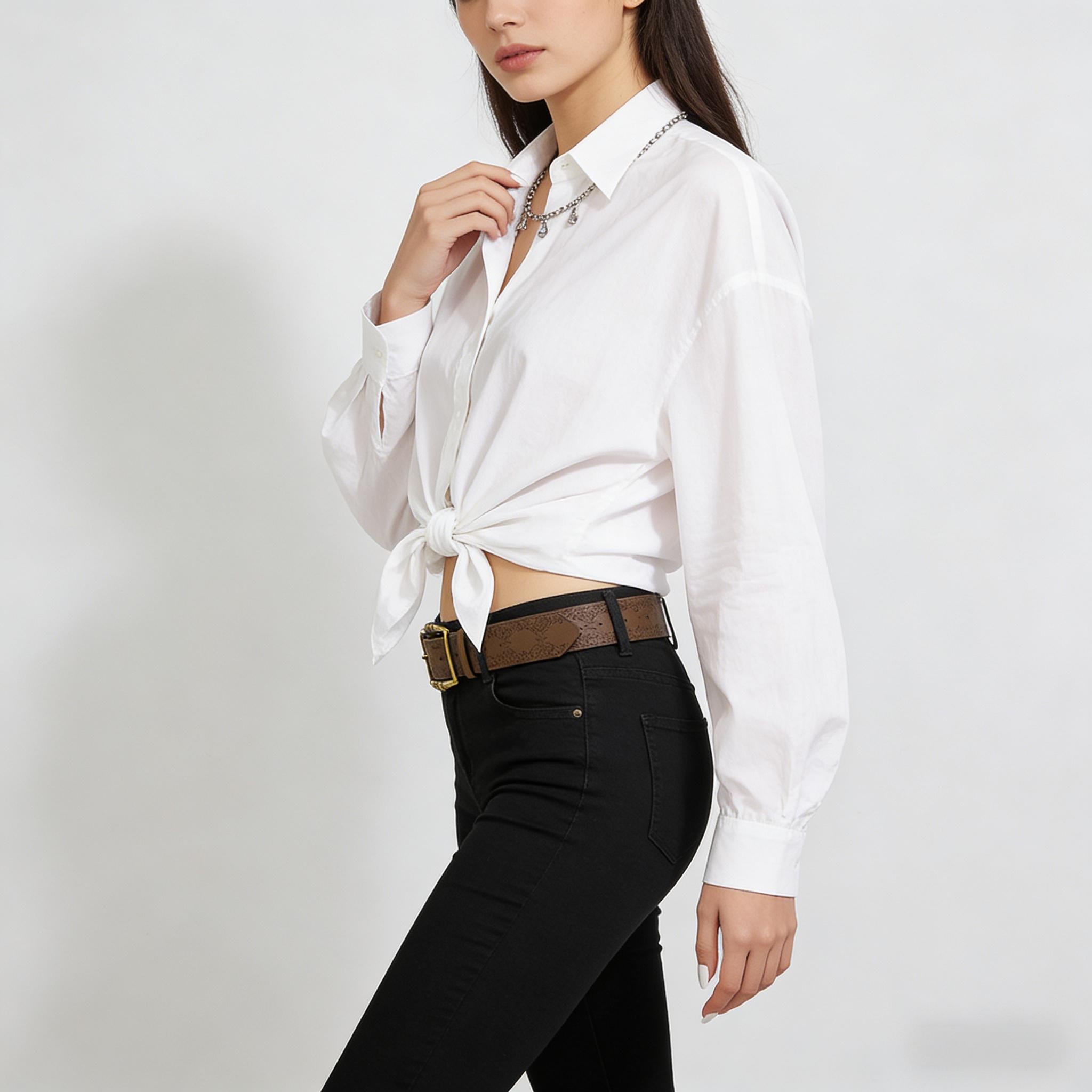Pair with wide-leg jeans for casual weekends — the retro buckle adds a Y2K vibe